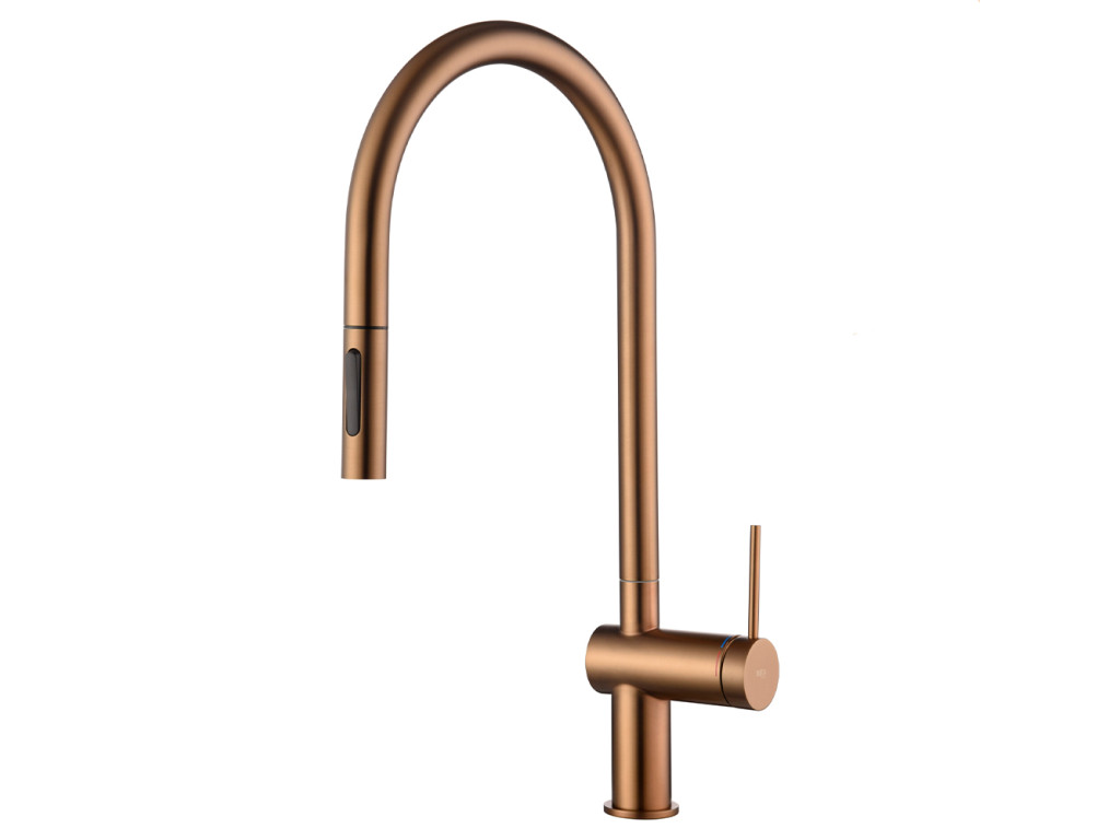 IMEX Berna kuchyňská baterie s vytahovací sprškou, kartáčované růžové zlato