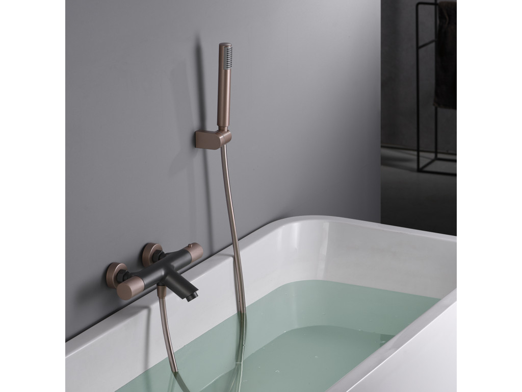 IMEX Line termostatická vanová baterie + SET hadice, držák, ruční sprcha šedá matná/champagneDoplňkové parametry