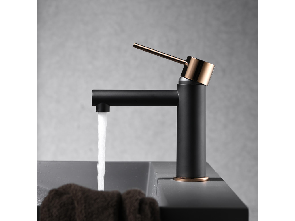 IMEX Milos umyvadlová baterie černá matná/růžové zlato