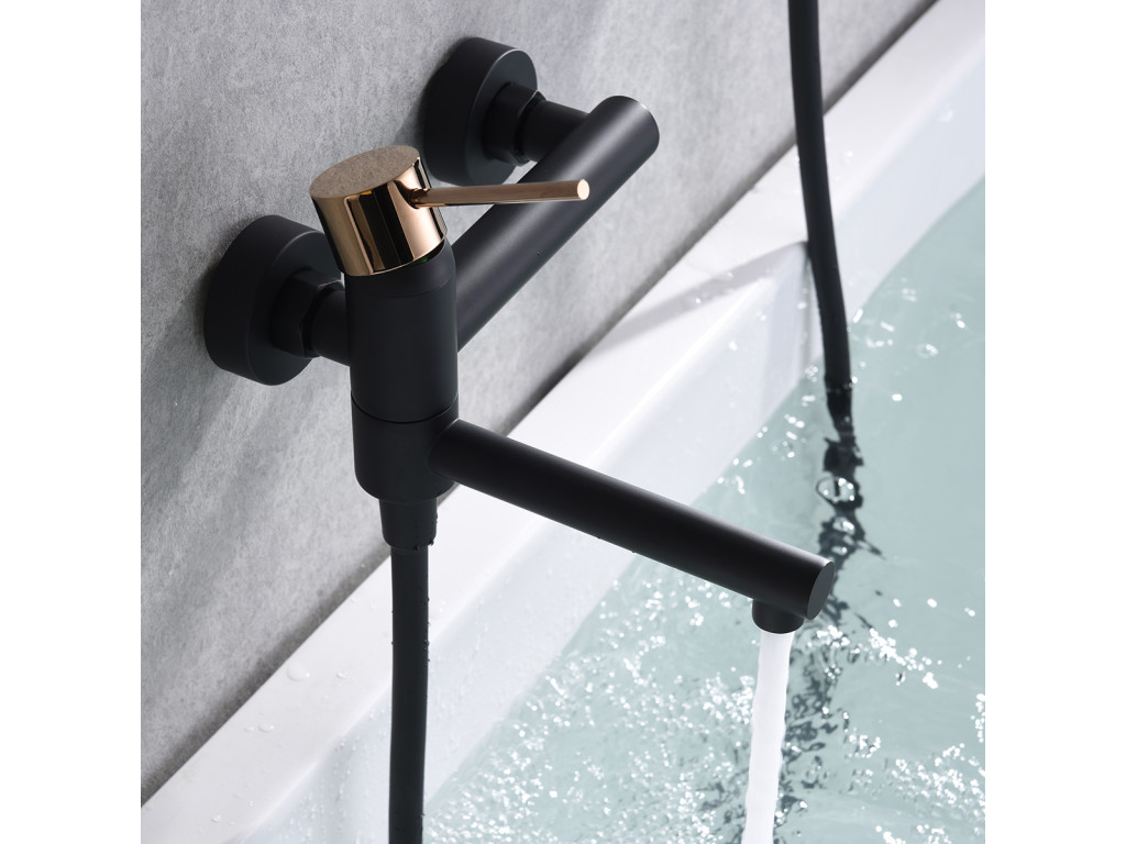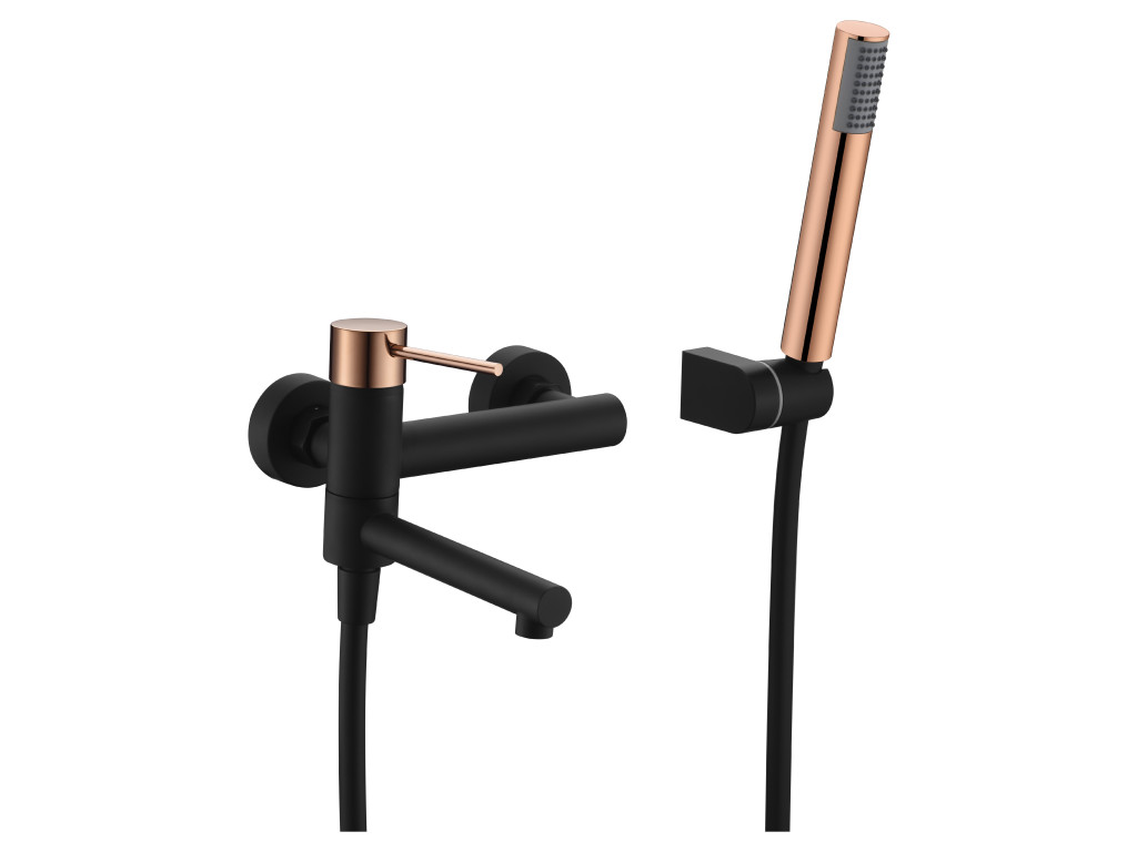 IMEX Milos vanová baterie + SET hadice, držák, ruční sprcha černá matná/růžové zlatoDoplňkové parametry