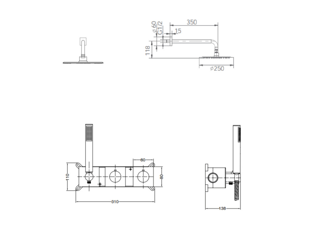IMEX Nepal termostatický sprchový podomítkový SET černá matnáDoplňkové parametry