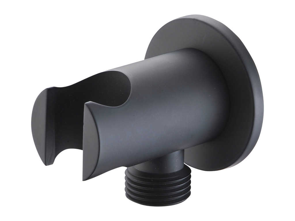 IMEX Oblá rohová přípojka s držákem ruční sprchy černá matná